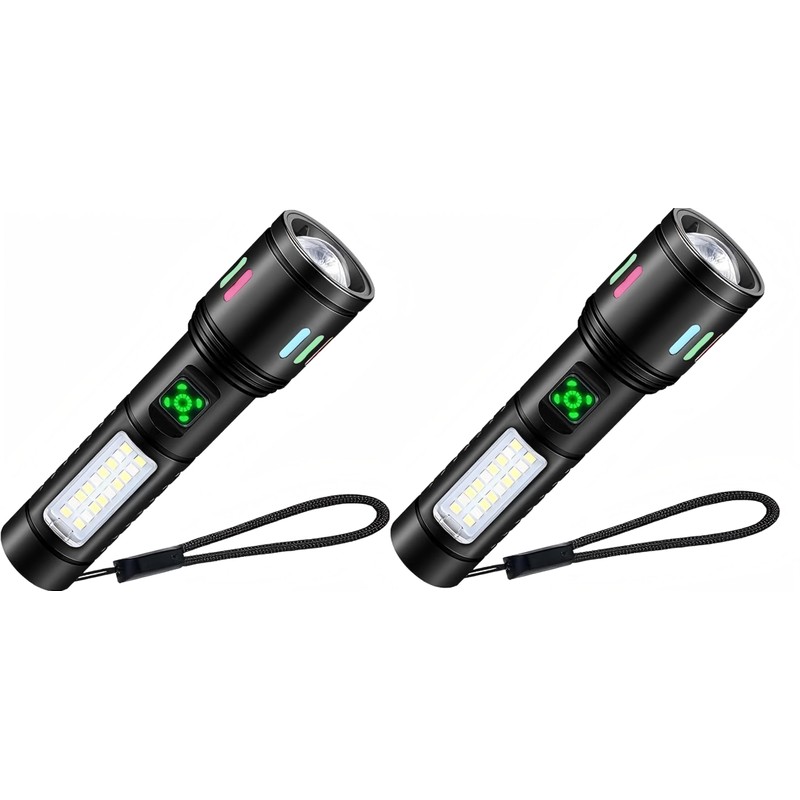Flashlight, 2025 Enhanced Edition, Luminous Light, Handheld Torch, LED Light, White and Red COB Work Light, 6 Modes Dimmable, Maximum Illumination Distance, 16 Hours of Illumination, High Capacity
