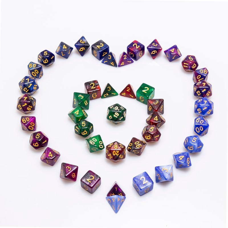 - STARRY SKY INSID GAMING DICE There are 2 colors in one piece cube. It looks like the Milky Way is in the cubes, which makes the cubes more beautiful and mysterious.