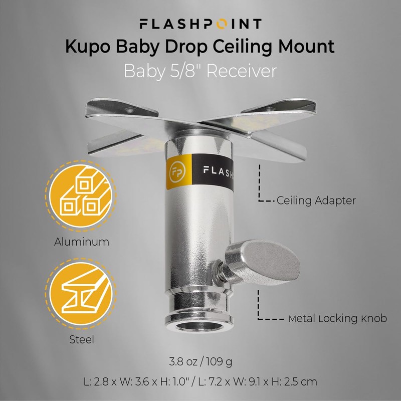• EASY INSTALLATION - The Flashpoint Baby Drop Ceiling Mount simplifies setup, allowing you to quickly and securely attach your lighting gear to drop ceilings, saving valuable time on set.