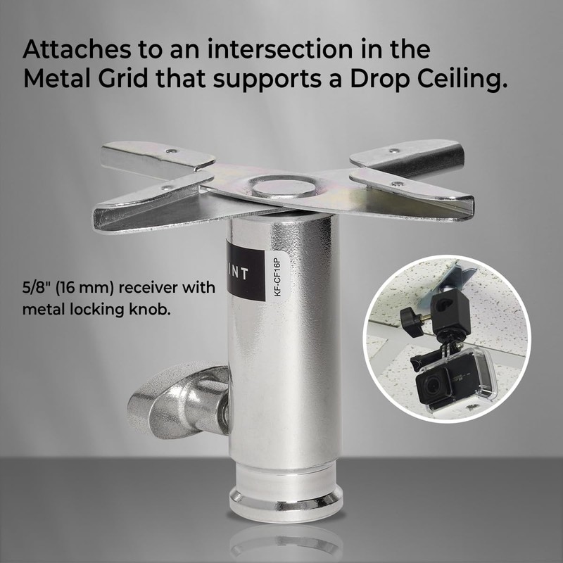 Are you seeking to optimize your lighting setup in a drop ceiling environment Look no further than the Flashpoint Baby Drop Ceiling Mount. This precision-engineered mount is specifically designed to attach securely to the intersections of the metal grid that supports your suspended ceiling. The mount features a baby 5/8-inch receiver, perfectly complemented by a sturdy metal locking knob. This design allows for seamless integration of any lighting fixtures or accessories that come with a 5/8-inch stud. The result A reliable and secure foundation for your lighting equipment, paving the way for the creation of bespoke lighting arrangements.The Flashpoint Baby Drop Ceiling Mount is crafted from a high-quality blend of steel and aluminum. This robust combination ensures exceptional durability and reliability, providing a steadfast foundation for your lighting equipment. This level of stability allows for precise and secure mounting, fostering an environment where customization and adaptation are at the forefront of your lighting endeavors.Experience a new level of versatility with this meticulously constructed mount. Its design harmonizes seamlessly with the metal grid intersections, ensuring a perfect fit and secure attachment. This mount amplifies your creative potential, offering an uncompromised foundation for your lighting setup.The amalgamation of steel and aluminum in its construction ensures a durable and resilient build, promising steadf