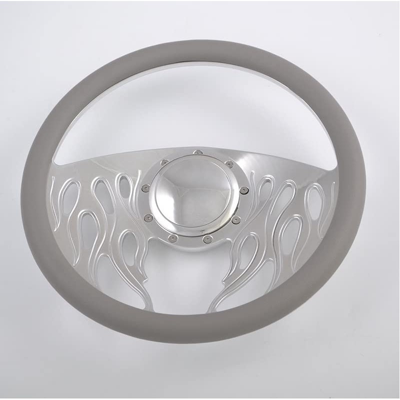 Flashpower 14'' Billet Flame Half Wrap 9 Bolts Steering Wheel with 2'' Dish and Horn Button (Light Grey)
