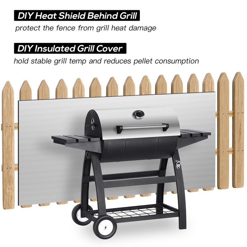 • Very greatful efficiency in heating and cooling, more better than other meterial-DIY Heat Shield Behind Grill, protect the fence from grill heat damage, DIY Insulated Grill Cover, hold stable grill temp and reduces pellet consumption