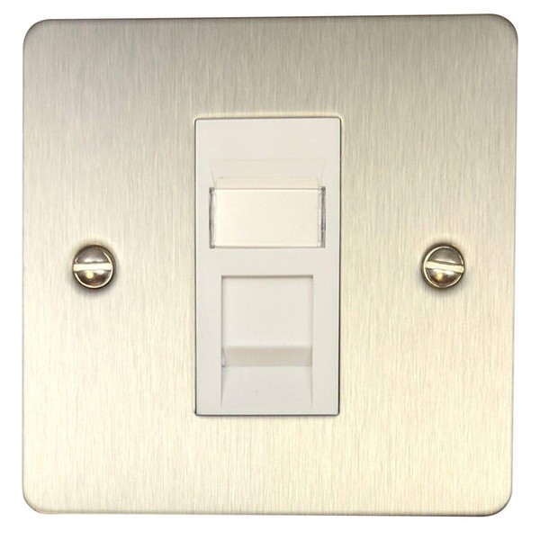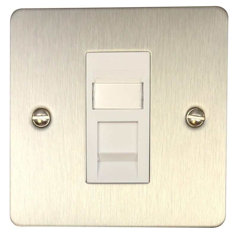 Flat Brushed Steel RJ45 Socket (1 Gang/White Insert)