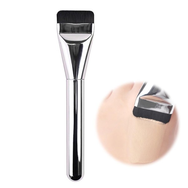 - The flat foundation brush is equipped with ultra-thin brush head for easier and more convenient use, allowing for precise and controlled application. The aluminum handle provides a comfortable grip, which helps apply foundation smoothly and evenly, and works with any liquid, cream, or powder makeup.Can effectively apply cosmetics to the face. In addition, they can also be used to shape your chin contour and apply styling powder