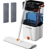 Flat Mop and Bucket System Separate Dirty and Clean Water Floor Mop and Bucket Set with Wringer Wet and Dry Use Mop with Detachable Clear Bucket Microfiber Mops for Floor (Mop Set with 2 Pads)