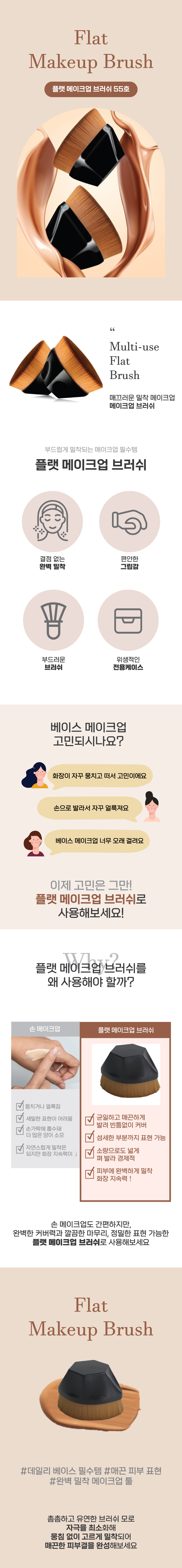 ✨ Its unique flat head effortlessly glides across your skin, ensuring every drop of foundation is blended seamlessly for a natural finish.