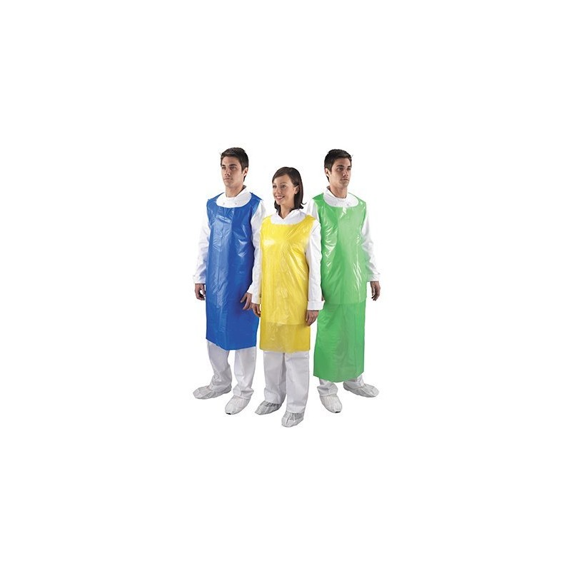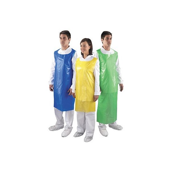 - FLAT PACKED: in polybags of 100 blue aprons