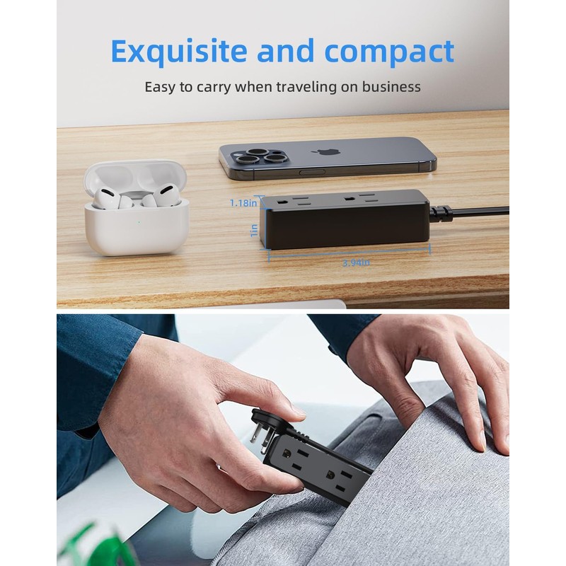 • [Outstanding Performance]: Crafted with V-0 flame-retardant ABS plastic housing and 16/3 AWG copper conductors insulated by PVC, this flat plug power strip delivers exceptional durability and fire resistance perfect for multi-device charging at home, in hotels, or on the go