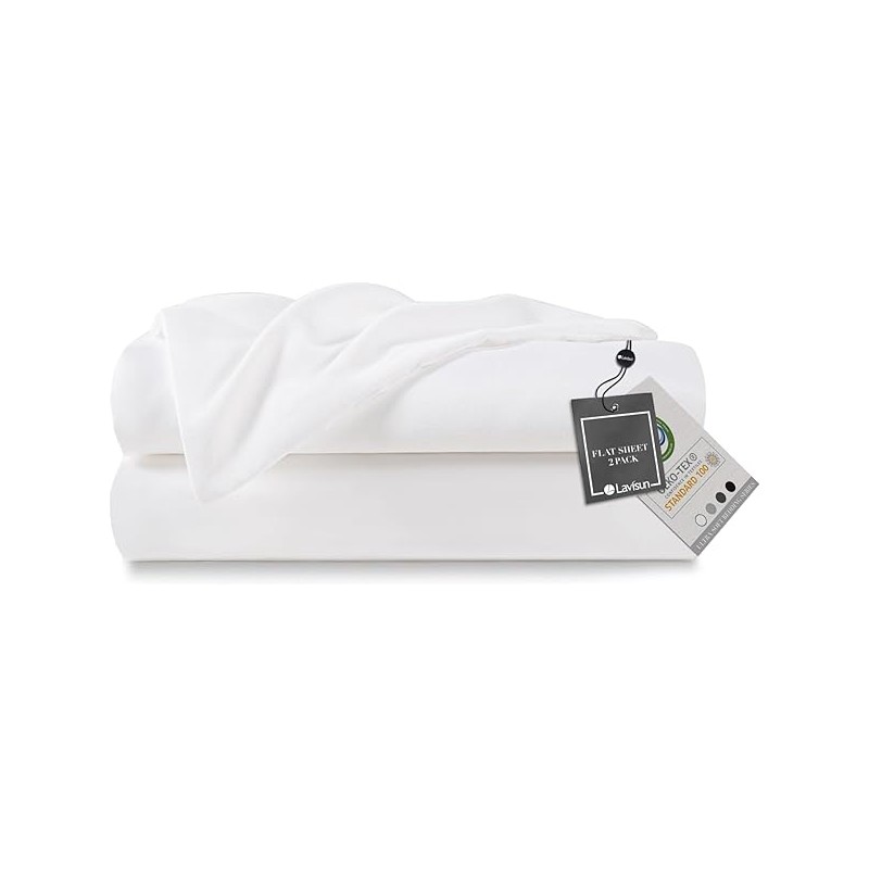 Flat Sheets Only 2 Pack, Hotel Quality Twin Flat Sheets Only, Soft Brushed Microfiber Flat Sheet Set, Breathable & Wrinkle-Free, Perfect for Home, Dorm & Massage (White, Twin)