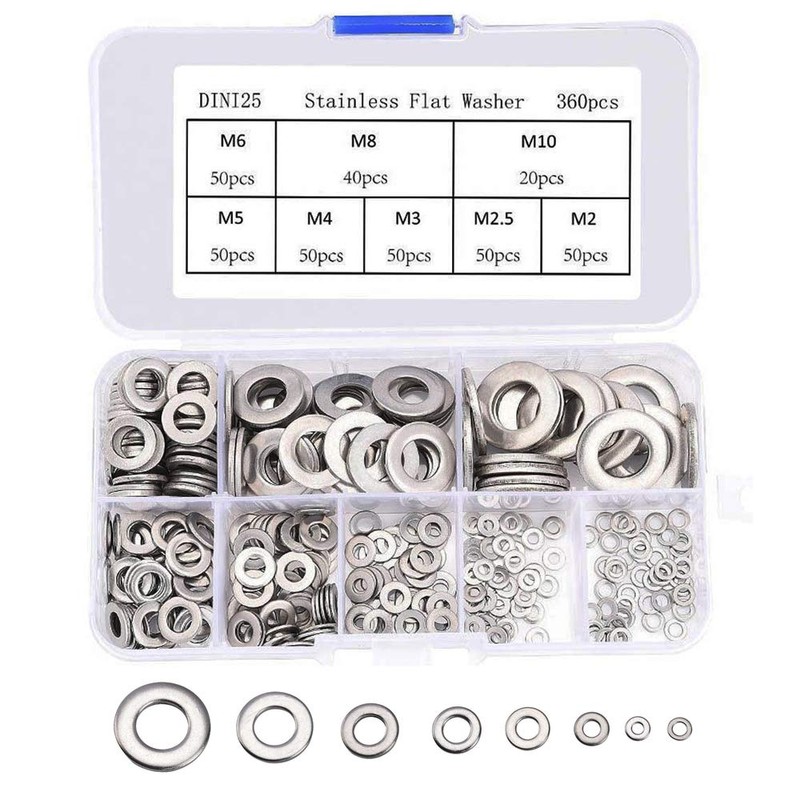 Flat Washers 360 Piece Set Flat Washers Stainless Steel M2 M2.5 M3 M4 M5 M6 M8 M10