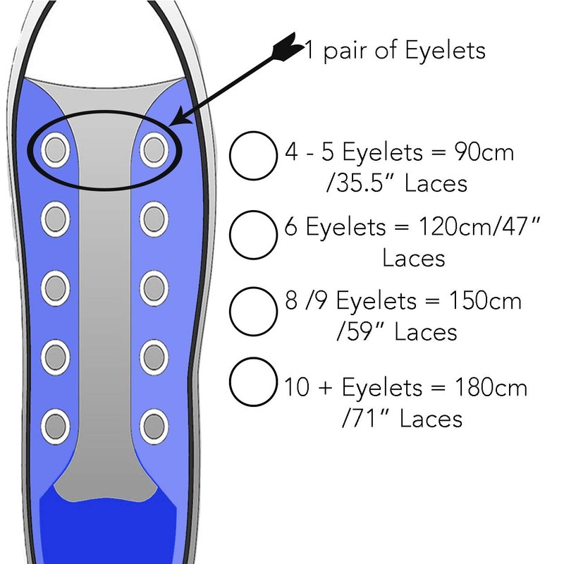 - Our high-quality flat, waxed laces for trainers are 10 mm wide and equipped with plastic ends to protect the material from fraying. Our sneaker shoelaces are available in 4 sizes: 90 cm / 35.5, 120 cm / 47, 150 cm / 59, 180 cm / 71 inch laces for sneakers.