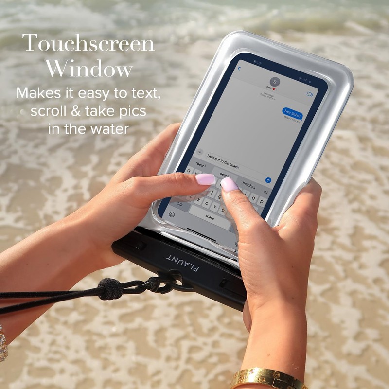- Touchscreen Compatible: The touchscreen gives you access to your phone in the water and lets you text, scroll, and snap pictures without removing your phone from the pouch.
