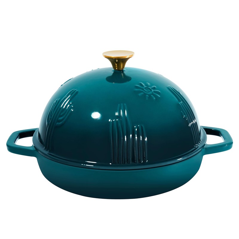 Flavehc Bread Oven Cast Iron Bread Dutch Oven with Cloche Lid for Bread Baking Darkcyan Enameled Cast Iron Bread Oven with Dome Lid for Sourdough, 9.8 Inches