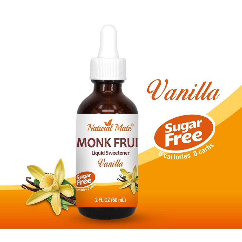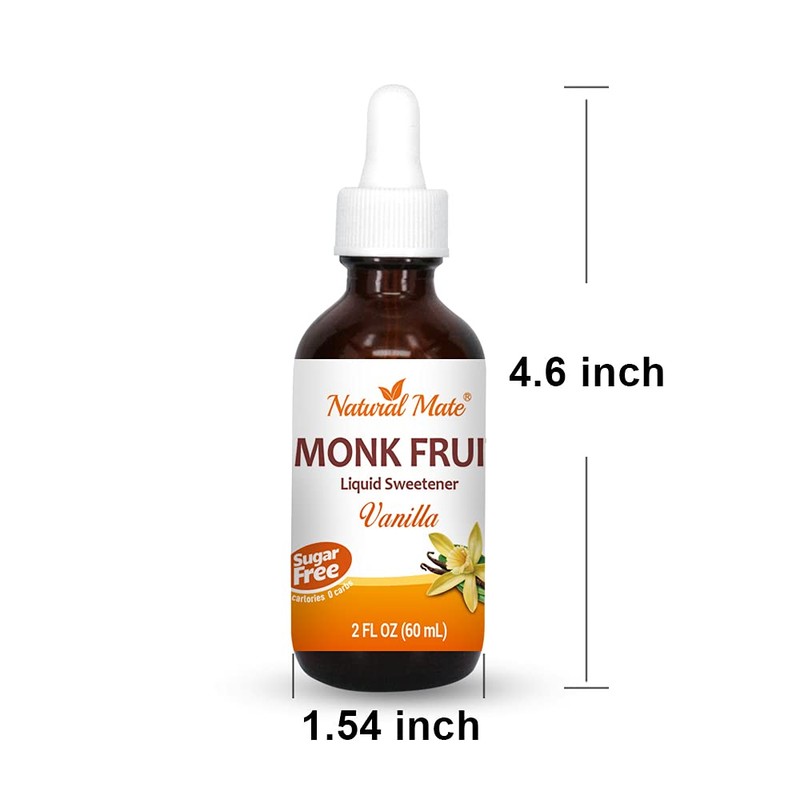 - Vanilla flavored liquid monk fruit sweetener 2.0 FL OZ / 60 mL