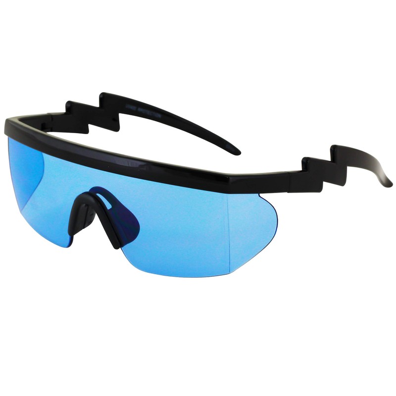 FLAWLESS EYEWEAR Semi Rimless Goggle Style Retro Rainbow Mirrored Lens ZigZag Sunglasses (Blue)