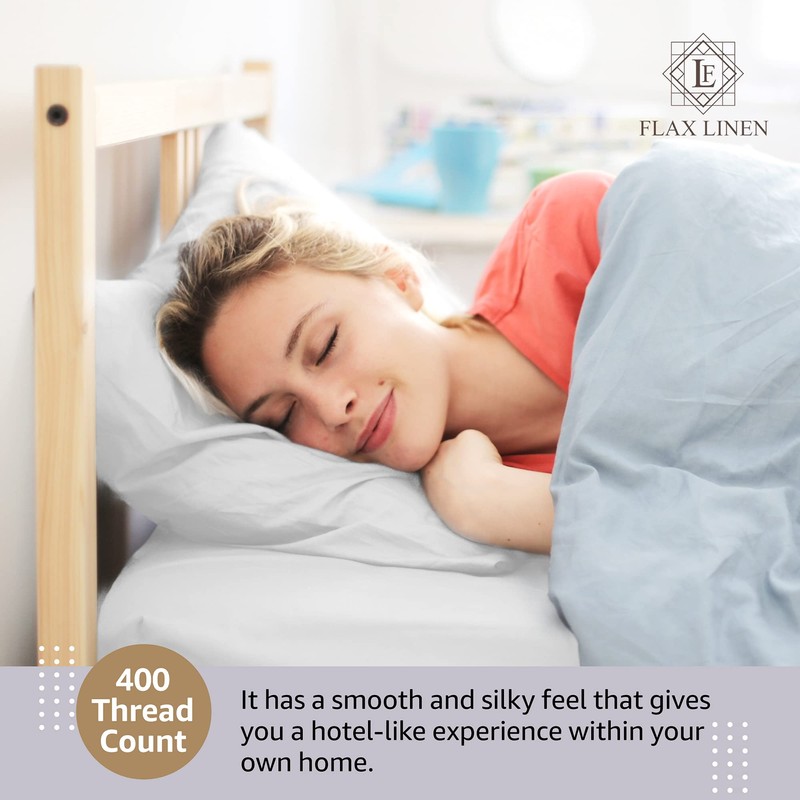 Flax Linen Egg White Pillowcases 2 Pack (1 Pair), 400 Thread Count Egyptian Cotton Pillow Cases, Ragina Hotel Collection, Luxurious, Premium Quality Pillow Cover, Standard Size, 50x75cm