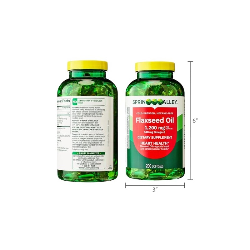 Flaxseed Oil Softgels 1,200 mg – 200 Count – Vegetarian Omega-3 Supplement (Pack of 1)