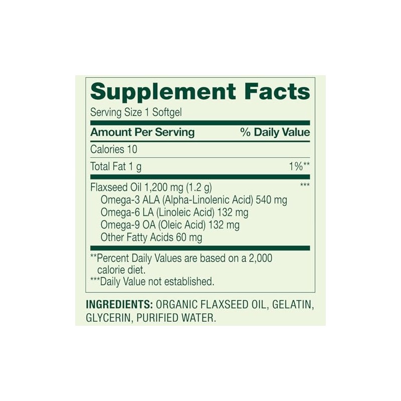 - High-Dose Omega-3 Source – Each softgel delivers 1,200 mg of flaxseed oil, providing a rich source of ALA.