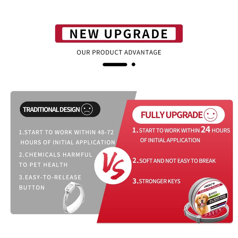 - 【No Biting】: Jmxu's flea collar for dogs fights off parasites before they need to bite your pet. Odourless, water-resistant and easy-to-apply