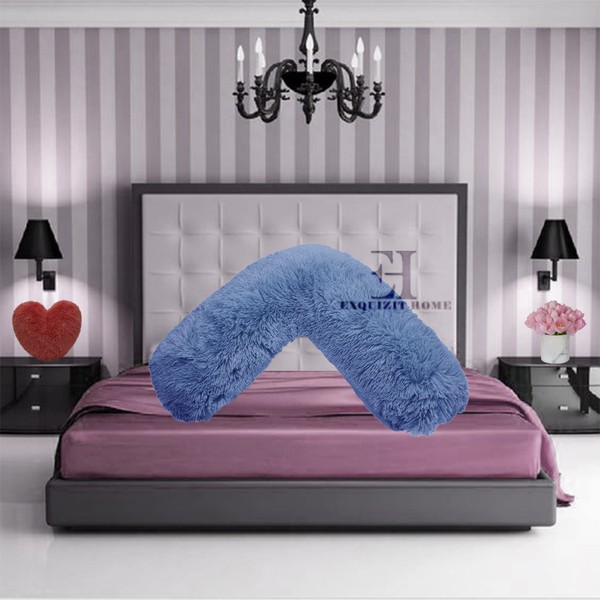 Fleece Pillowcase V Shaped Cover Only Teddy Cuddles Fleece Super Soft Pillow Case COLOUR: DENIM BLUE