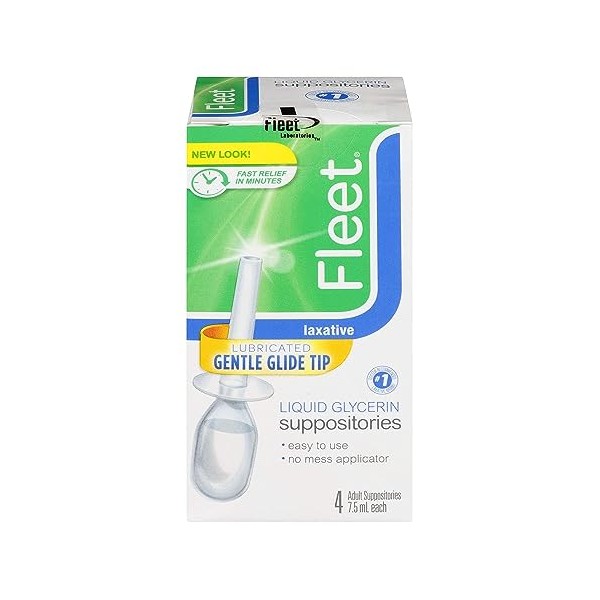 Fleet Liquid Glycerin Suppositories work in as little as 15 minutes. They are easy-to-use, have a mess-free applicator with a lubricated gentle glide tip and are a comfortable, gentle alternative for those who prefer not to use an enema and also want stimulant-free relief. The liquid glycerin suppository is inserted rectally, allowing it to act locally in the colon without having to go through the entire digestive system. Fleet Liquid Glycerin Suppositories work with the water in your system to produce a bowel movement in 15 minutes to 1 hour. Made by the #1 suppository brand*, Fleet Liquid Glycerin Suppositories provide fast, predictable relief in minutes. *IRI data 52 wks ending 12.29.19