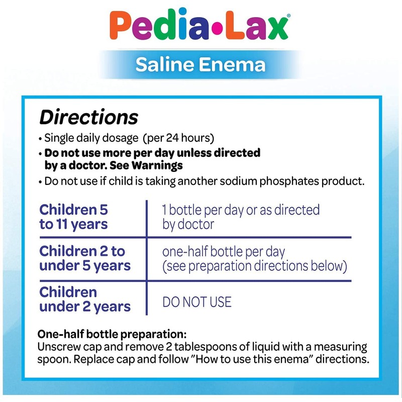 Introducing Fleet Pedia-Lax Saline Enema, the gentle and effective solution for providing relief from occasional constipation. This convenient enema is specially formulated to promote regular bowel movements, ensuring comfort and ease for children. With its innovative formula, this is the go-to choice for quick, safe, and hassle-free relief in a dose suitable for children. NDC Code: 0132-0202-20