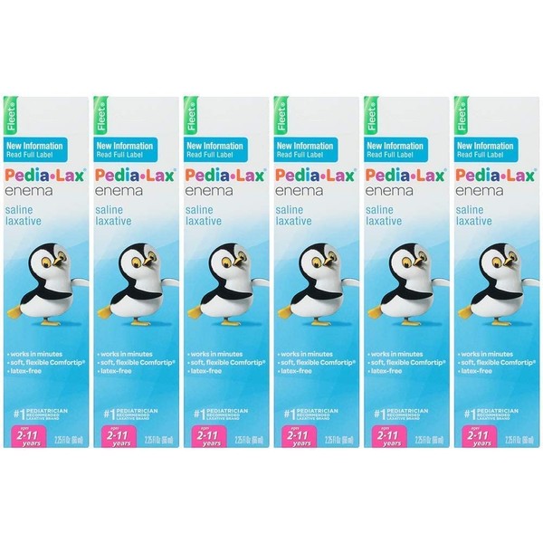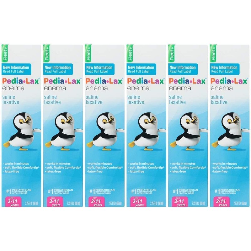 - Contains 6 pack of Pedia-Lax Laxative Saline Enema, 1 bottle, 2.25 fl oz