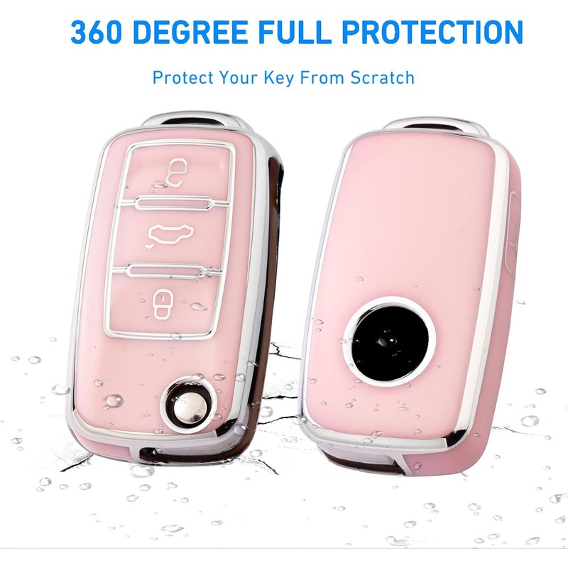 Flensent Key Fob Cover with Keychain for VW Tiguan Touareg Jetta Beetle CC Eos Golf GTI Passat (Pink)