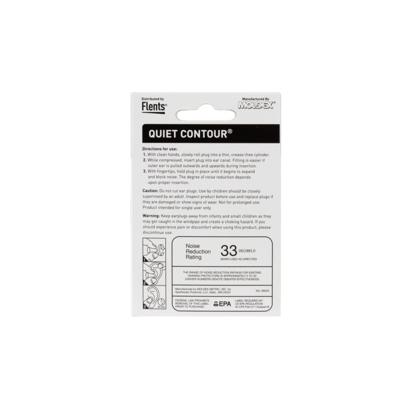 The Flents Quiet Contour ear plugs offer hearing protection from construction, heavy machinery, hand tools, music and other loud environments. Also great for creating silence when focus or concentration is needed. CONTOUR SHAPE & COMFORTABLE FIT - The ear plugs are made of a soft foam that sits comfortably in the ear. Ear plug foam compresses quickly for easy insertion. Specialized contour shape creates a snug and comfortable fit in your ear 20 PACK - Product comes in a convenient pack of 10 pair NOISE REDUCTION RATING - Ear plugs rated for 33 decibels SAFE TO USE - Product is safe to use and designed to keep your inner ear safe when inserted
