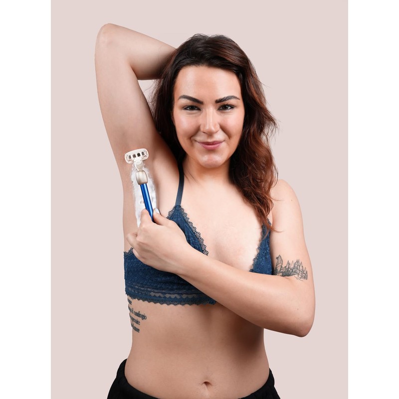 Fler The Razor Starter Set - Women's Razor with Interchangeable Razor Heads, Razor with Holder and 2 Replacement Blades, Unisex Razor, Razor Blades with Aloe Vera, Vitamin E (Midnight Blue)