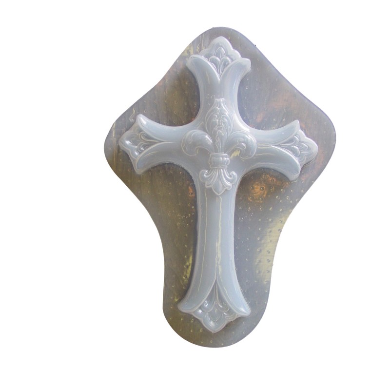 Fleur De Lis Cross Plastic Craft Mold to use with Concrete or Cement to make plaques 7212