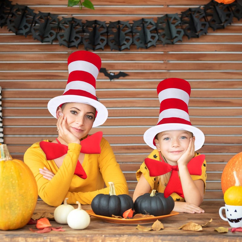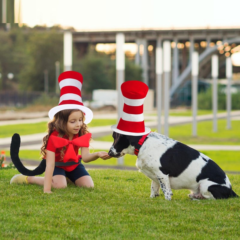Fleursun Fleursun Cat Hat in Red White Striped Cat Hats, Read Book Day Cat Costume Accessories, Halloween Party Dress up (White Red)