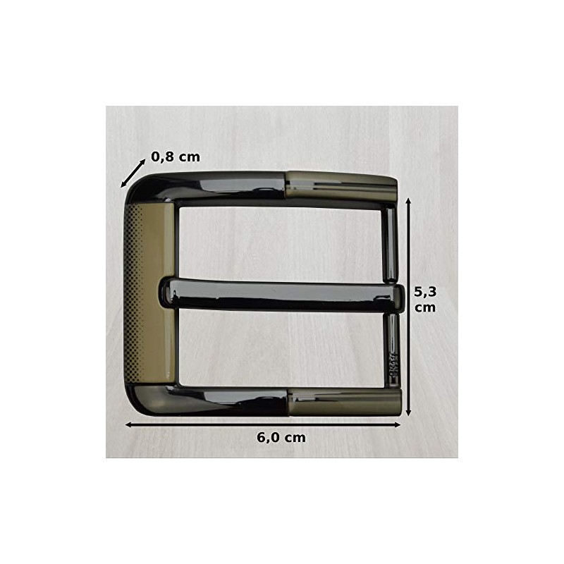 Dimensions of the belt buckle: approx. 6.0 cm x 5.3 cm x 0.8 cm (W x H x D).