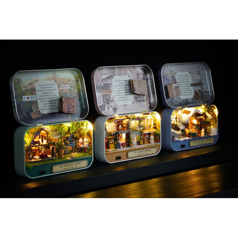 - Package includes 3 pcs of kits,which are Rural Diary,Wandering Winter and Happy Corner Finished assembly product size:5.62x3.3x1 inches Package includes all the furnitures and accessories in the pictures