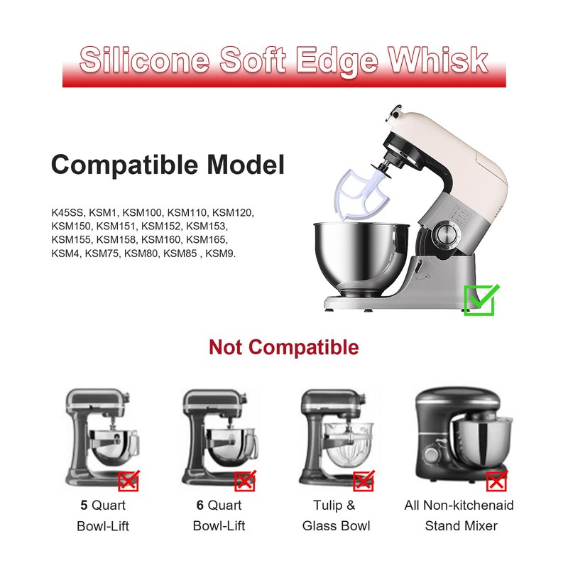 - 👩🍳[Easy Mixing]: With a sturdy metal frame, this Flex Edge Beater is flexible enough to hit every side. Great for mixing sugar and eggs, cream, thin biscuit dough, frosting, meatloaf, pie fillings, mashed potatoes and more. Suitable for regular and heavy duty mixtures, but not for hard doughs.