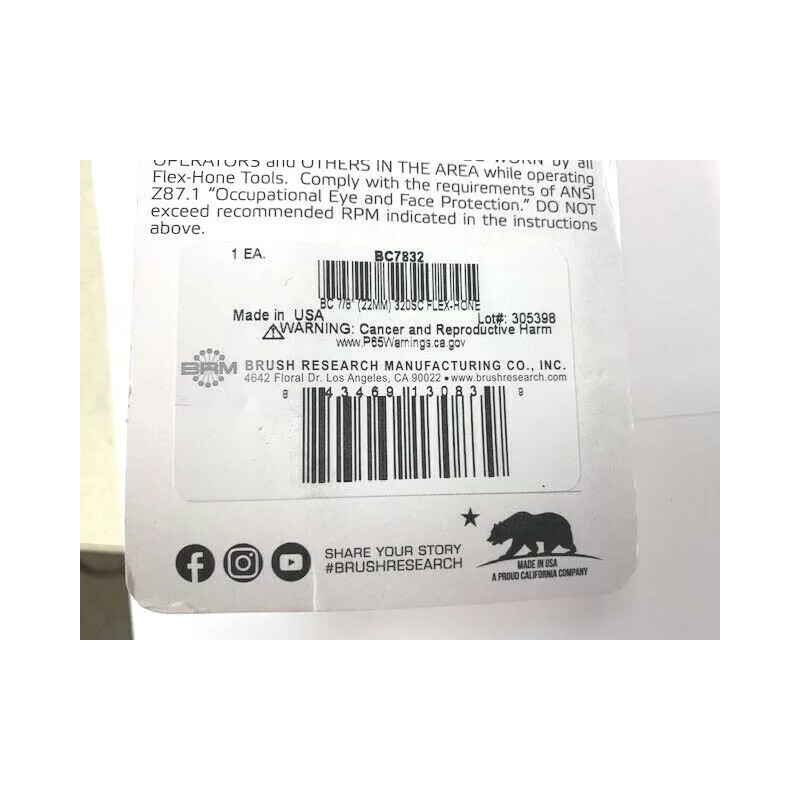 Flex-Hone 7/8"  320 GRIT SILICONE CARBIDE  FLEX HONE  BRUSH RESEARCH (22MM) BC7832 NEW