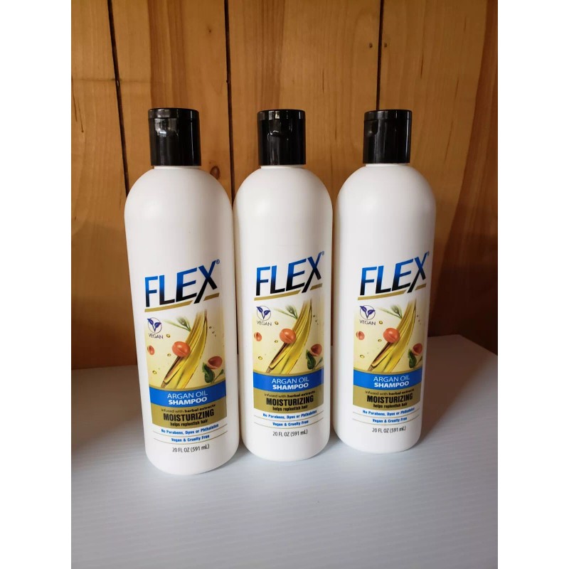 Flex Lot of 3 Flex Argan Oil Vegan Herbal Extract Shampoo 20 oz. FULL-SIZE!