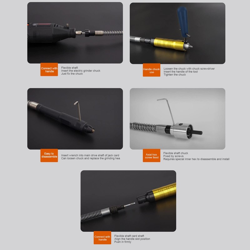 - Application: When a flexible shaft is used with a straight grinder, it can be used for polishing, engraving, drilling, cutting, grinding, shaping, grinding and other operations