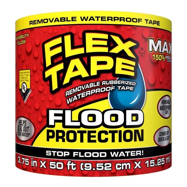 Flex Tape Flood Protection, 3.75 in x 50 ft, MAX, Waterproof Rubberized Tape, Removable, Use on Windows, Doors, Garage Doors, Casings, Thresholds, Conduits, Vents, Ducts