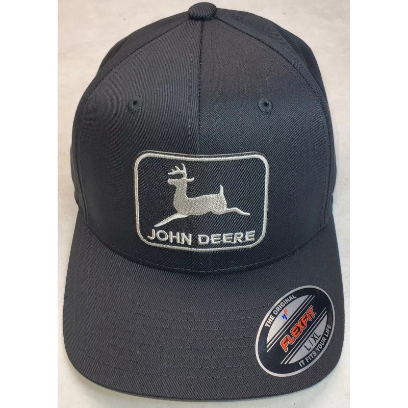 Flexfit John Deere Black Patch on Flexfit Style 6277 Hat / Black - L/XL 7 1/8" - 7 5/8"