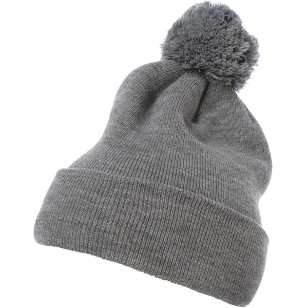 Flexfit Unisex Cuffed Pom Knit Beanie Hat, Heathergrey