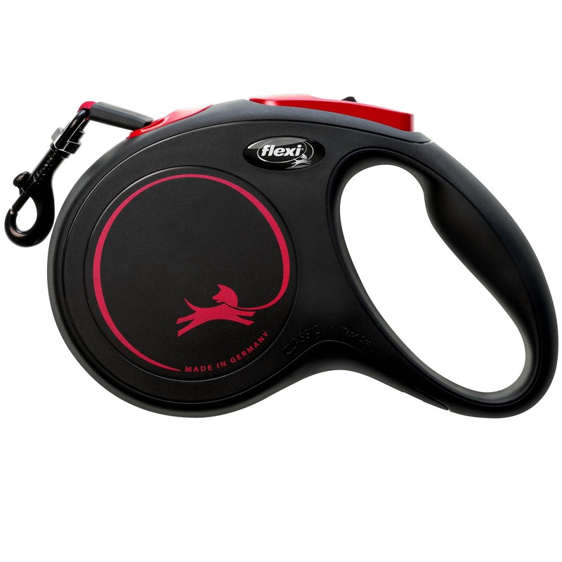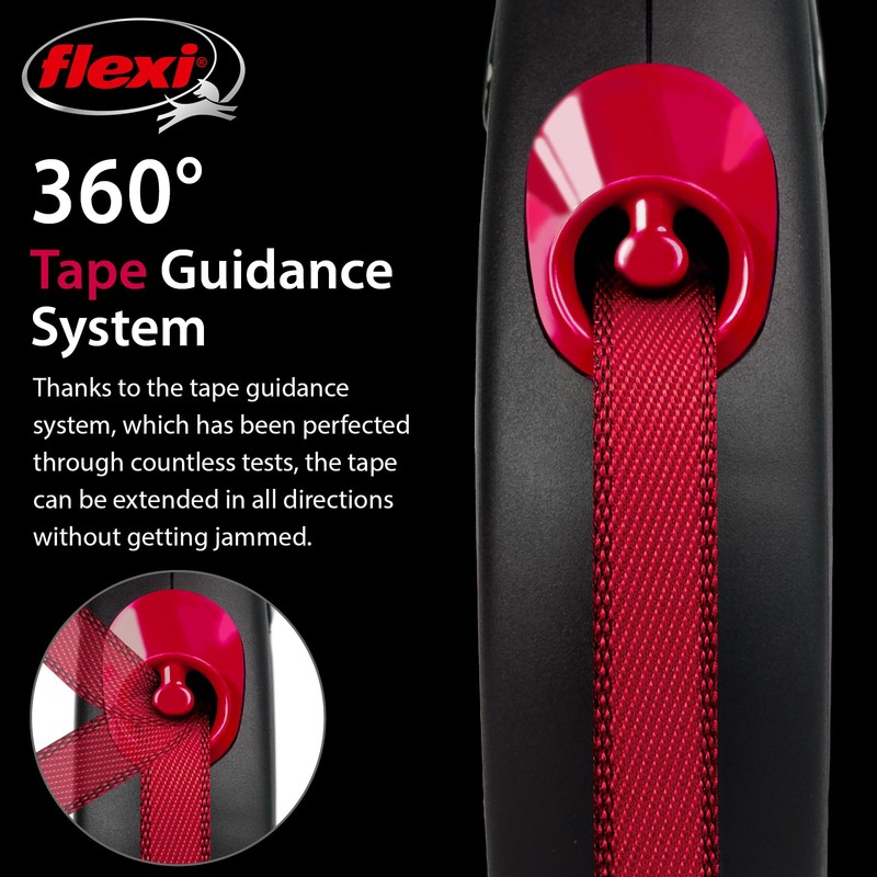 FLEXI New Classic Tape Retractable Dog Leash for Medium Dogs Upto 30-55 lbs. – 16 ft., Black Red |Tangle Free Pet Walking Leash with One-Handed Brake, Pause, Lock |German Quality Product