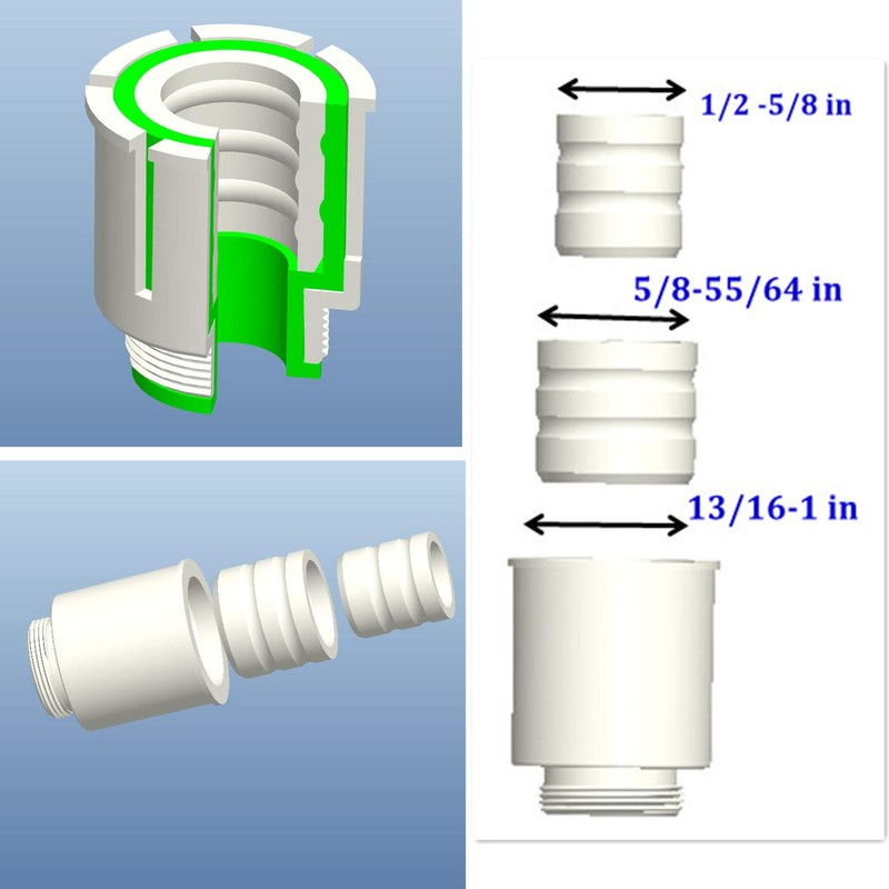 4.Please note that the spout fine thread size of the faucet is about external 55/64 " or internal 15/16" before purchase, otherwise use the configured white plastic universal adapter (fit spout size 1/2" to 1 inch)
