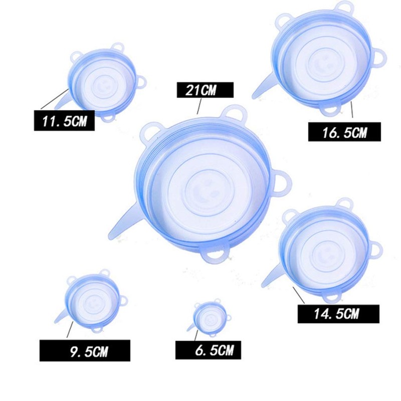 **Features:** Non-slip ring ensures air-tightness and does not leak out. Heat resistance and cold tolerance can use in microwave and freezer Round shape but pliable enough to seal even odd-shaped containers,so suitable for multiple sizes. Easy to clean up and dishwasher safe. Not easy to be out of shape and skid resistant. These handy covers are made from super-stretchy silicone. They are microwave-safe, freezer-safe and dishwasher-safe. Heat-resistant to 450 f, so reheating foods is never a problem. Airtight lids can keep foods fresh and prevent water from spilling out. Warming tips 1\. When you are using it in Microwave or Oven,do not completely seal container would be better. 2\. The stretch lids can fit many kinds of container whether round, square, rectangular, etc. 3\. Clean lids with soft tool and keep them dry before use and after each use. 4\. Flexible Size: 2.6"(will stretch to 3.3") 3.7"(will stretch to 4.8") 4.5"(will stretch to 6") 5.7"(will stretch to 8") 6.5"(will stretch to 9") 8.3"(will stretch to 10") How to use: 1\. Place half of the lids over one edge of the container. Start on the side close to your body. 2\. Stretch the other half of the lid away from you,inching your way around the bowl. 3\. Stretch, then press the top of the lid while pulling the tabs to create a vacuum seal. 4\. Pull the side to ensure perfect fit.