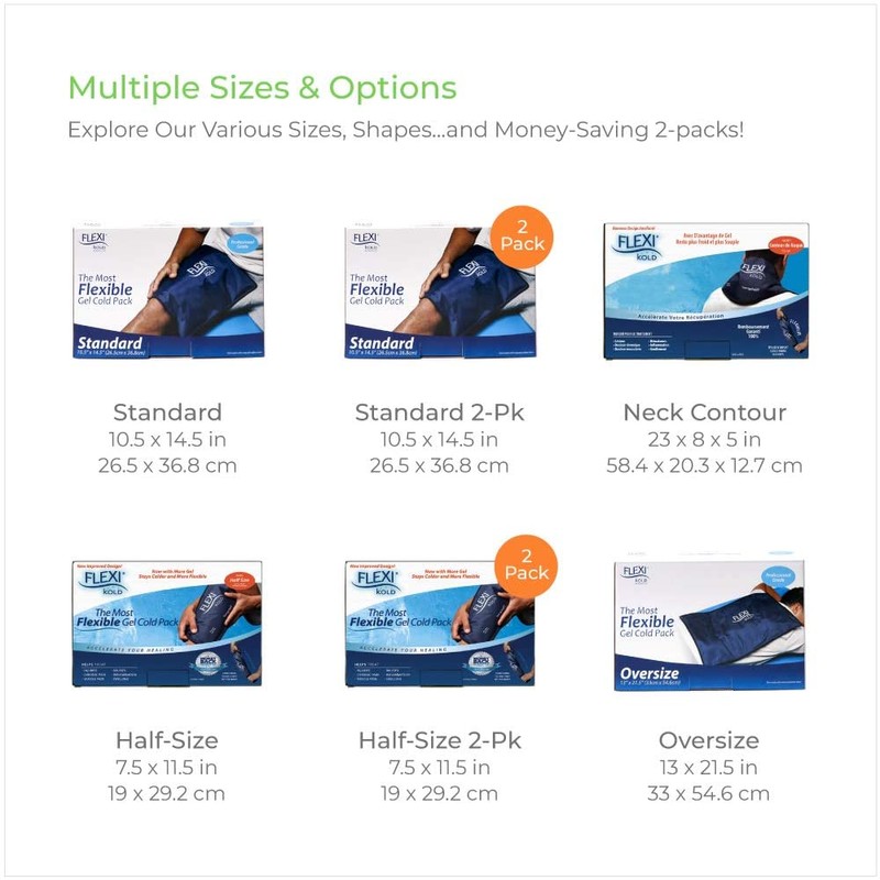 FlexiKold Gel Ice Pack (Standard Large: 10.5" x 14.5") - Two (2) Reusable Cold Therapy Packs (for Pain and Injuries to Knee, Shoulder, Foot, Back, Ankle, Neck, Hip, Wrist) - 6300-COLD by NatraCure Store
