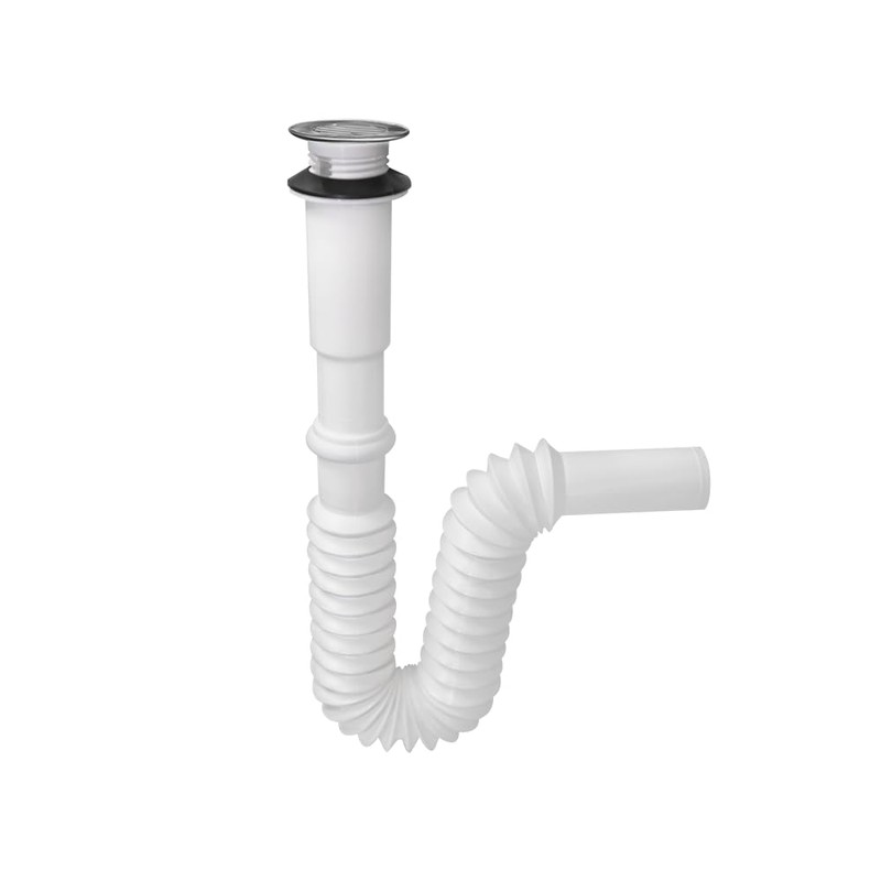 FLEXIMATIC 2932A Céspol Práctico flexible tipo "P" con rejilla cubierta de acero inoxidable, extensión 55 cm para lavabo
