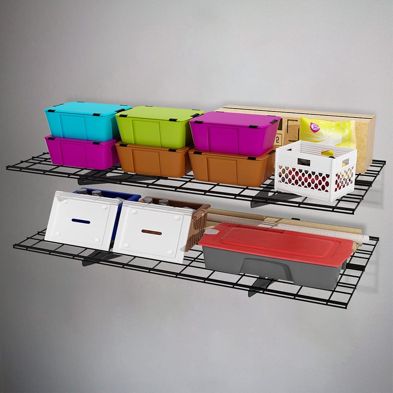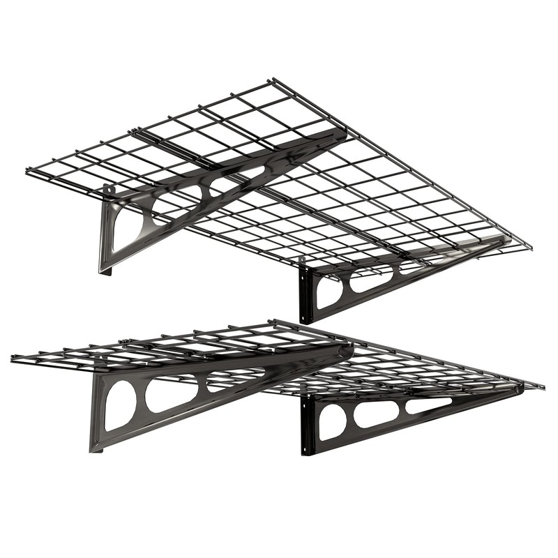 FLEXIMOUNTS FLEXIMOUNTS 2-Pack 2x4ft 24-inch-by-48-inch Wall Shelf Garage Storage Rack Wall Mounted Floating Shelves, Black