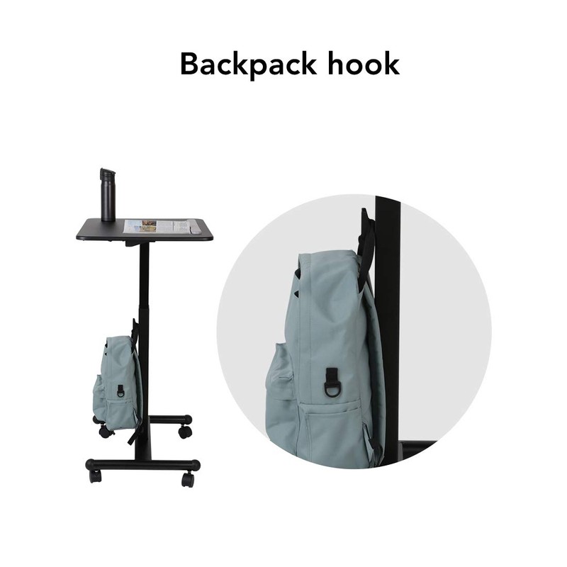 - Mobile Rolling Desk - Enjoy smooth-gliding mobility with four 2.4” swivel wheels (2 locking). Simply screw in the wheels for a portable workspace that stays put when you need it.One hook can hang backpacks, handbags, to increase storage space.