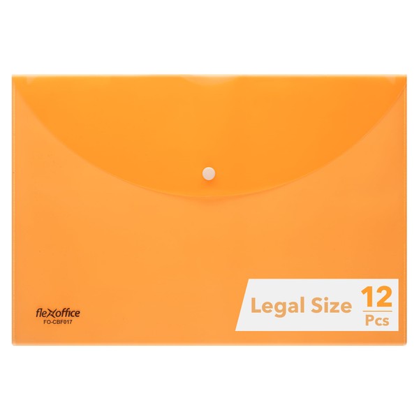 FLEXOFFICE 12 Pcs Legal Size Plastic Envelopes with Snap Closure 9"x12", Orange, Reusable File Folder Organizer to Document A4 Size, US Letter, for School and Office Supplies