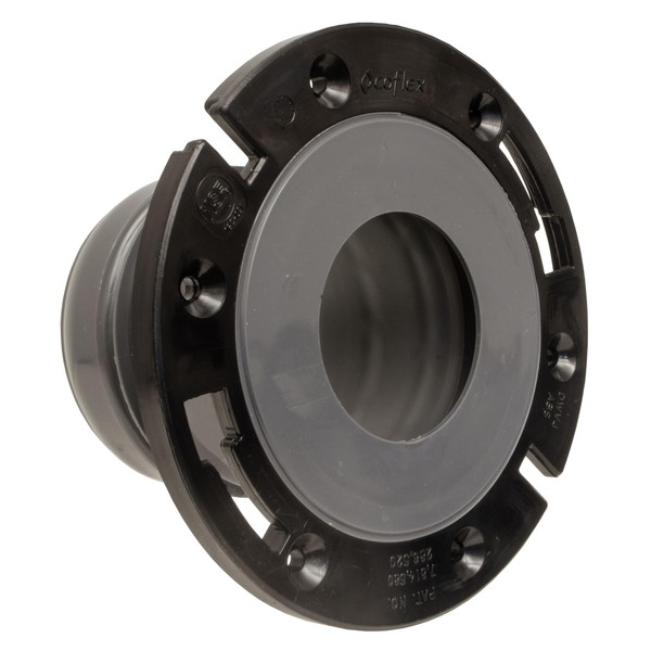 FlexOn 4-Inch Toilet Flange Repair Kit, No-Wax Commode Flange with Spacer, Offset Bolts & Seal Gauge - Fits ABS, Cast Iron & Tile Floors, Elevates 3/8" to 1-1/8" (Black/Gray)